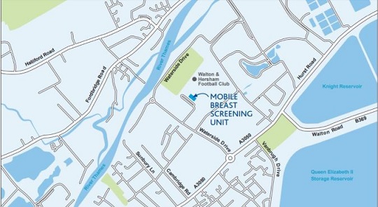 Make your way along the A3050 towards Walton & Hersham Football Club, turn at the roundabout onto Waterside Drive and turn onto the Elmbridge Xcel Leisure Complex, the unit is situated on the Car Park.